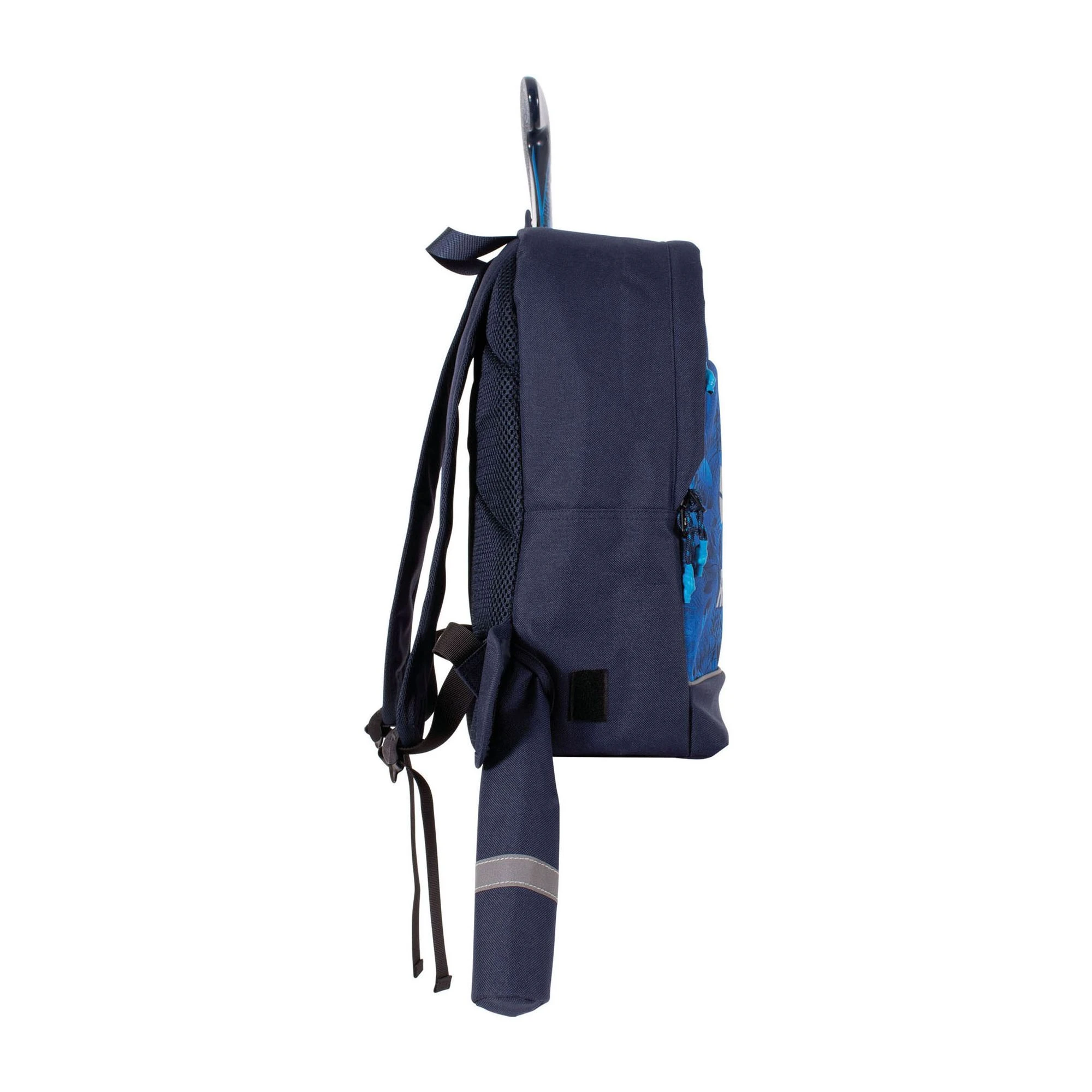 ein großes Fach mit zwei Fächern, eine kleinere Fronttasche, eine Netz-Seitentasche und eine Durchstecktasche für Ihren Hockeyschläger